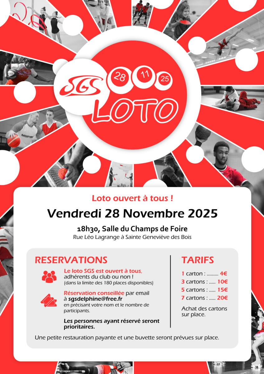 Venez tenter votre chance lors de notre loto convivial, ouvert à tous, adhérents SGS ou non !